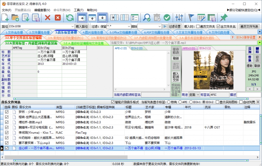 你是音乐爱好者吗?你有大量的MP3、APE、OGG、FLAC等的音乐文件并需要对音乐标签、封面图片或歌词进行批量处理吗?