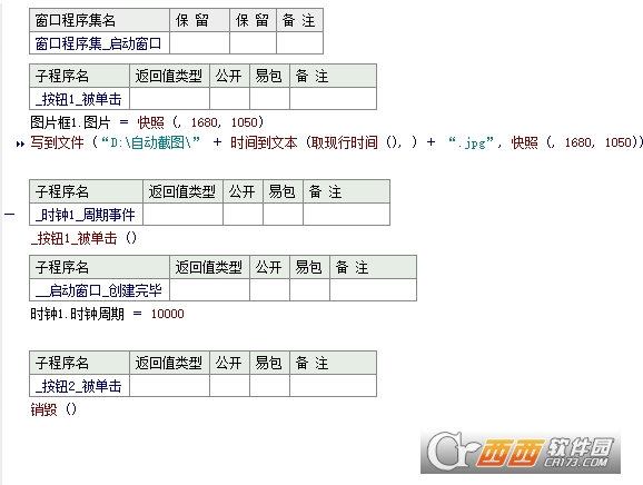 定时截图(适合办公)是一款用易语言编写的自动截图快照保存助手,有自动截图十秒一张、自动截图三小时一张和手动设置定时截图工具,办公小白有时候需要临时出去,可是没法看着电脑这个时候小工具就可以发挥作用帮你记录电脑屏幕所有过程,可以让工作没有遗漏。