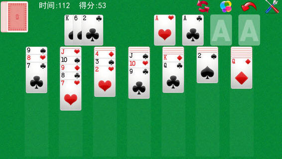 但是,不能在列之间随机移动纸牌。必须按降序(从 K 到 A)构建列。因此,您可以在 J 上而不能在 3 上放 10。