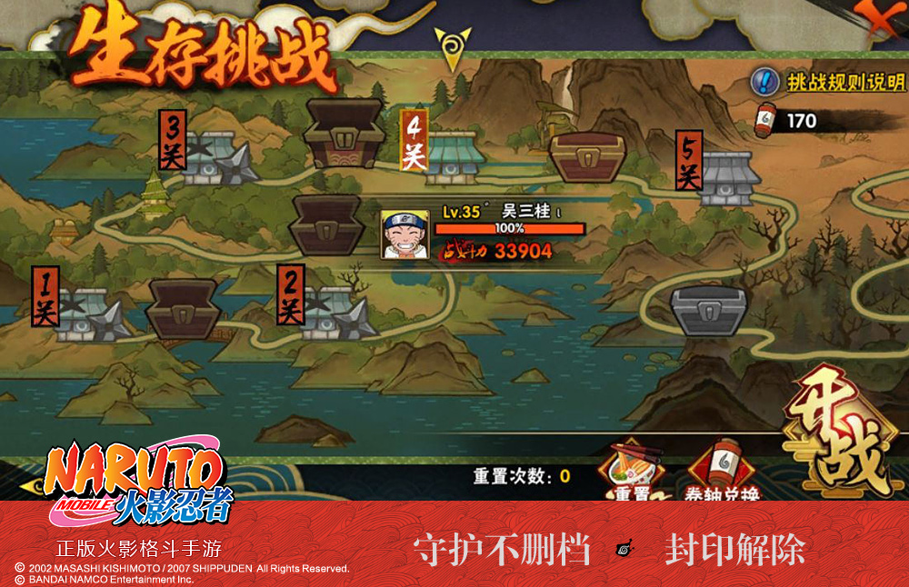 生存挑战精进角色实战能力,通过设置15个据点,让玩家携带12名忍者挑战突破,战斗中玩家一方面可以尝试与高战斗力的玩家进行PK,更重要的是能够提升忍者战斗操作水平。而修行之路侧重闯关历练,获取大量铜币与勾玉、忍玉提升综合战斗实力。