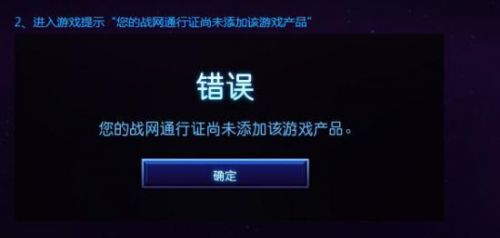 2、进入游戏提示“您的战网通行证尚未添加该游戏产品”