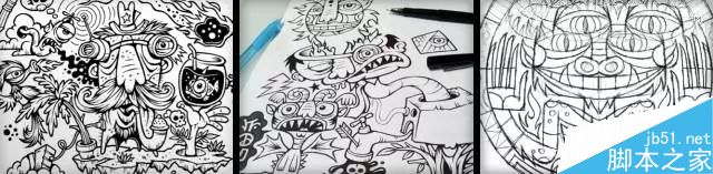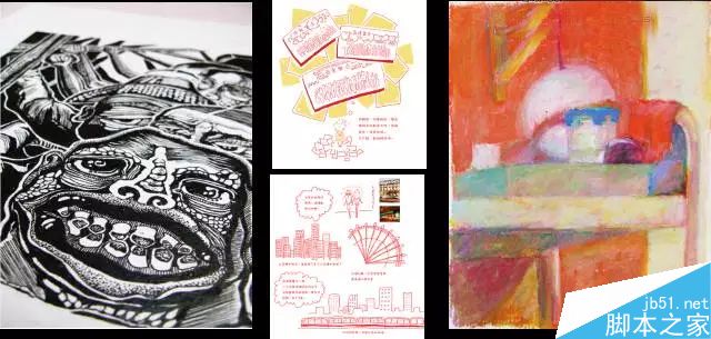 上学的时候可以自由支配的时间很多,我会做很多练习,尝试用不同的工具,针管笔、手写板、油画棒等,有针对性解决黑白分配、表述故事和用色彩造型的问题。